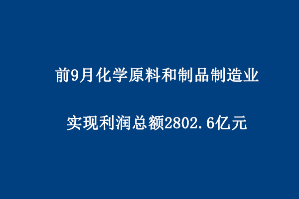 前9月化學(xué)原料和制品制造業(yè)實(shí)現(xiàn)利潤總額2802.6億元